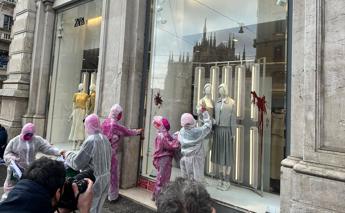 Preso di mira anche lo Starbucks Reserve Roastery di via Cordusio accendendo un fumogeno rosa davanti alla sede: “Boycott Starbucks, finanzia Israele – hanno urlato – hanno le mani sporche di sangue”. La stessa azione è stata compiuta nei confronti del negozio di Zara all’angolo con via Torino. Gli studenti hanno imbrattato con della vernice rossa una delle vetrine e attaccato sulla stessa dei cartelli bianchi con le scritte: “Zara 100% greenwashing”, “Zara, complici del genocidio”. “Nel cambiamento siamo tutti coinvolti – dice una delle ragazze dal palco -. Vogliamo una scuola libera dalla cultura dello stupro e dalla cultura del silenzio. Vogliamo essere libere di uscire la sera senza preoccuparci di essere seguite sotto casa”. “La colpa – incalza – non è nostra, è sempre la loro, dei maschi violenti e della società patriarcale”. Prima dell’avvio del corteo, che da largo Cairoli terminerà in Porta Venezia, alcuni studenti hanno srotolato un manifesto rosa con la scritta ‘Stop patriarcato stop genocidio’.
