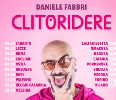 Lo spettacolo teatrale Clitoridere, scritto e interpretato da Daniele Fabbri pioniere della stand-up comedy italiana e vincitore del Premio Satira Forte dei Marmi 2023, propone una riflessione ironica e culturale sui tabù legati alla sfera intima e alla rappresentazione pubblica della sessualità nel contesto contemporaneo.