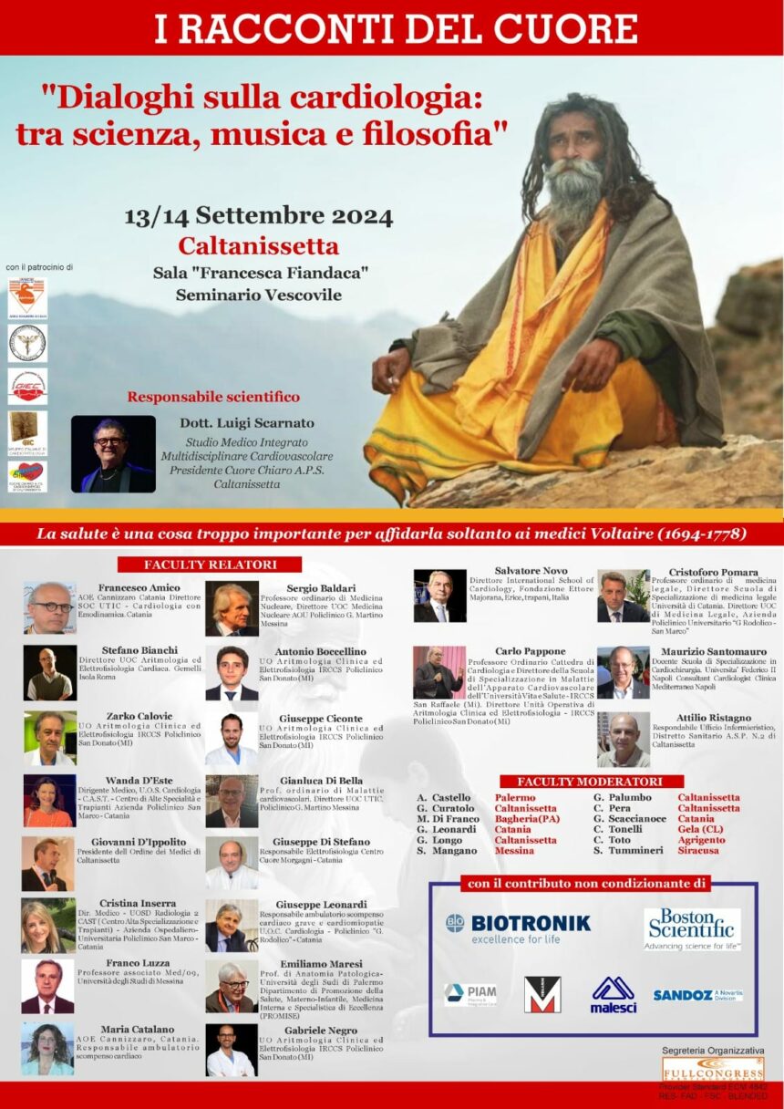 Mancano ormai pochissimi giorni al convegno “Dialoghi sulla cardiologia: tra scienza, musica e filosofia”, organizzato da Luigi Scarnato, che si terrà i prossimi 13 e 14 settembre nella sala “Francesca Fiandaca” del seminario vescovile di Caltanissetta, sito in viale Regina Margherita.