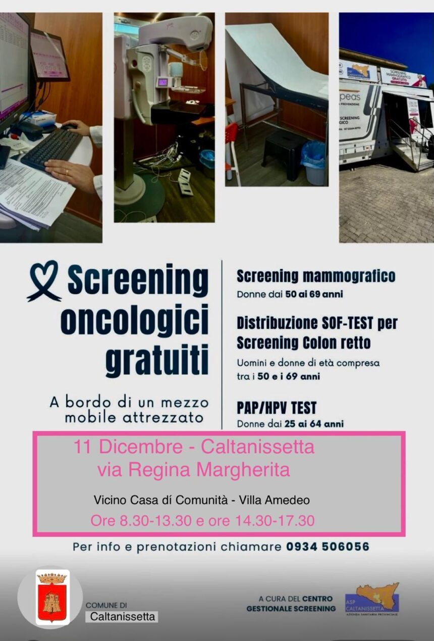 Un'opportunità importante che nasce dalla collaborazione tra il Comune di Caltanissetta, l'Asp di Caltanissetta e il Centro Gestionale Screening, con l'impegno congiunto degli operatori sanitari e delle strutture dedicate alla prevenzione.