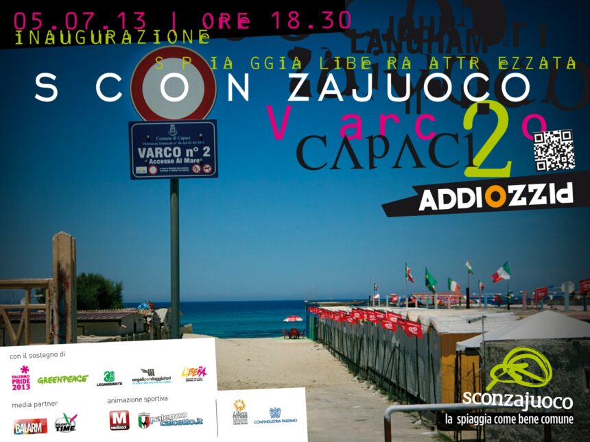 Per la prima volta il Comitato Addiopizzo gestirà un tratto di spiaggia libera attrezzata, a Capaci. Sconzajuoco è il nome scelto per il lido che verrà inaugurato venerdì 5 luglio alle 18.30. Dopo il taglio del nastro – affidato alla famiglia di Libero Grassi, l'imprenditore antiracket ucciso dalla mafia – e la conferenza stampa, dalle 22.30 si svolgerà una festa con i volontari dell’associazione antiracket. Sconzajuoco sarà un nuovo modo di vivere il mare e la spiaggia. “Sarà un luogo aperto alla partecipazione, nella logica della gestione collettiva dei beni comuni – dicono i promotori della iniziativa -. Il chiosco bar offrirà prodotti pizzo-free dei produttori di Addiopizzo. Saranno previsti dei servizi per disabili. In particolare la spiaggia sarà dotata di una speciale sedia a rotelle in grado di muoversi sulla sabbia e accedere al mare. La spiaggia sarà arredata con materiale da riciclo, divani con i pallet, posacenere ricavati da bottiglie di plastica, tavolinetti con le cassette della frutta, e si effettuerà la raccolta differenziata. Anche per i bambini ci sarà particolare attenzione, con un’area giochi e animazione. Per l’occasione la collezione di libri presente presso la sede di Addiopizzo verrà trasferita a Sconzajuoco per garantire una servizio di biblioteca in spiaggia. Sarà prevista animazione con iniziative ed eventi musicali e culturali, presentazioni di libri, spettacoli”.