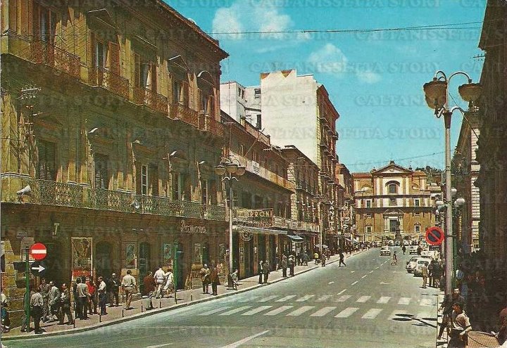 NELLA FOTO TRATTA DA CALTANISSETTA STORY, UN'ANTICA IMMAGINE DI CORSO UMBERTO CON IL CAFFE' ROMANO