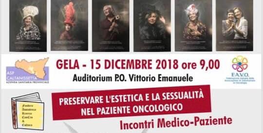 Il convegno “Preservare l’Estetica e la sessualità nel paziente oncologico”, nasce dalle riflessioni di un gruppo di persone che fanno parte di FARC&C, presieduta da Angela Lo Bello, e coincide con la volontà di fare informazione e formazione del Direttore del reparto di oncologia di Gela, il dott. Roberto Valenza. Sono tante le problematiche che un paziente oncologico non riesce ad esprimere al proprio medico e così dubbi e perplessità rimangono nella mente dei pazienti e dei loro familiari. Da qui la volontà di promuovere e organizzare un convegno con tematiche molto delicate e sensibili che sono molto spesso dei tabù. La FARC&C insieme al reparto di oncologia di Gela vuole rompere questi silenzi e diffondere cultura e conoscenza. Molti gli esperti che interverranno in questo convegno che si terrà il 15 dicembre alle ore 09.00 presso l’Auditorium del P. O. Vittorio Emanuele di Gela, e che risponderanno ai diversi quesiti che il cittadino- paziente si tiene dentro. Convegno che nasce come epilogo di un percorso di ex pazienti, le amiche in glicine, appendice di FARC&C che lo scorso anno le ha viste coinvolte con tenacia nella realizzazione di un calendario, o meglio “Il calendario”, che ha immortalato la loro resilienza. Queste donne sono testimoni che superare la malattia e riprendere la propria vita si può, non abbandonando la bellezza che ognuno di loro ha dentro e fuori nonostante il Cancro le abbia graffiate bruciando la loro intimità.