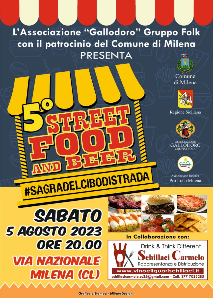 L’evento “STREET FOOD AND BEER”, interamente dedicato al CIBO DI STRADA, ha lo scopo di coinvolgere tutte le attività locali gastronomiche che cucineranno, appunto, in strada una varietà di pietanze per allietare il vostro palato; inoltre la birra alla spina accompagnerà ogni piatto scelto da voi, da qui nasce il nome BEER. La serata sarà decorata da tanta buona musica e artisti vari che vi coinvolgeranno lungo tutto il percorso dello street food. L’idea di accoppiare cibo, birra e musica ha lo scopo non solo di incrementare l’economia commerciale del paese ma anche di far sì che l’evento sia alla portata di tutti e crei armonia e tanto divertimento.