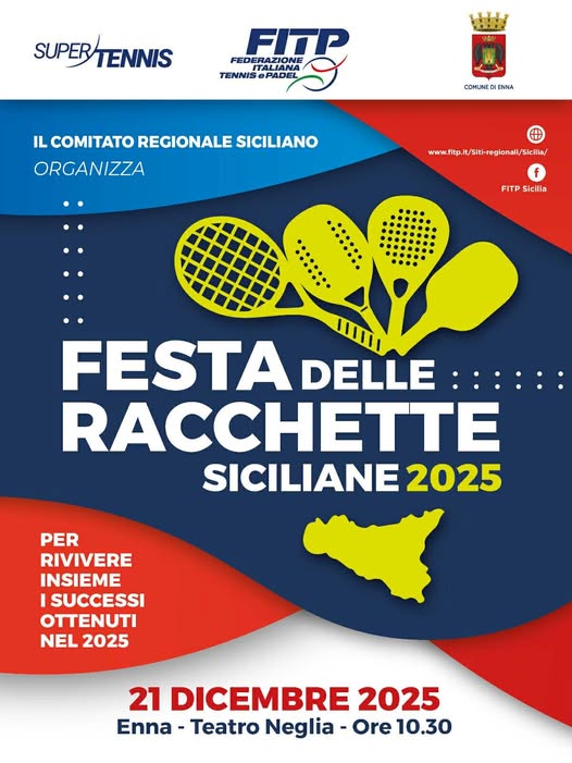 Per tradizione dicembre è il mese dedicato ai bilanci per l'anno che sta per andare in archivio ma anche un momento in cui si concede il meritato tributo per i risultati ottenuti. Ed ecco un'altra edizione delle Festa delle Racchette Siciliane prevista, come ormai da un paio di anni, all'interno del bellissimo Teatro Francesco Paolo Neglia di Enna. Domenica 21 dicembre a partire dalle 10.30, il presidente della Fitp Sicilia, Giorgio Giordano e i consiglieri regionali premieranno atleti e società che hanno dato lustro alla Sicilia, in Italia e nel mondo, nell'ambito del tennis, padel, beach tennis e pickleball. A presentare l'evento saranno i giornalisti Rita Cinardi e Marco Gullà. Oltre ai classici premi per i titoli italiani e internazionali, saranno assegnati anche i premi “Fair Play Simone Geracitano”, un premio che porta il nome dell'indimenticato presidente regionale, Gabriele Palpacelli, un riconoscimento al Circolo e all'atleta migliore della stagione che sta per concludersi e un altro per l'impresa del 2025. In apertura della Festa delle Racchette Siciliane verrà proiettato un video messaggio del numero 1 della Federazione Italiana Tennis e Padel, Angelo Binaghi. Un altro video invece ripercorrerà i momenti più significativi della stagione. Le parole del presidente del comitato regionale Giorgio Giordano. “Anche per questa edizione della Festa delle Racchette Siciliane ci ritroveremo all'interno del bellissimo Teatro Neglia e per questo motivo ringrazio il sindaco di Enna, Maurizio Di Pietro. Il 2025 ci ha dato tante belle soddisfazioni. Ultima in ordine di tempo, lo scudetto a Milano nel padel del mancino siracusano Flavio Abbate. Molti degli attori protagonisti di questi trionfi saranno presenti domenica 21 dicembre per ricevere i meritati applausi”.