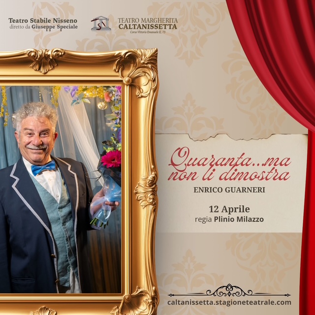 Domenica 12 Aprile 2026 alle ore 18,00 al Teatro Regina Margherita di Caltanissetta debutto nazionale della commedia scritta da Peppino e Titina de Filippo “Quaranta ma non li dimostra” con Enrico Guarneri.