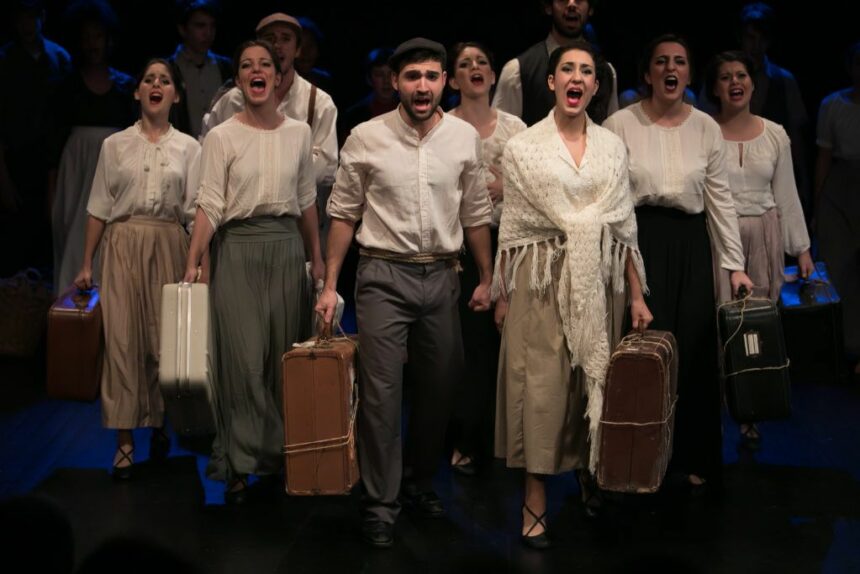Lo spettacolo lega insieme brani della tradizione e del cantautorato italiano, adattati in chiave teatrale, a pezzi cantati dai primi italo americani riportati alla luce grazie a un lungo lavoro di ricerca. Sul palco, nei ruoli principali, ci saranno Chiara Peritore (Clotilde Terranova), Gerlando Chianetta (Salvatore Spadaro), Cristina Mazzaccaro (nel ruolo di Filomena e della madre di Salvatore), Ilaria Conte (Rosaria Terranova) e Dario Veca (nel ruolo di Angelo). Sul palco ci saranno poi oltre 20 performer professionisti della Savatteri Produzioni, interpreti dei canti corali, delle danze mozzafiato e delle azioni sceniche serrate che manterranno un ritmo sempre crescente.