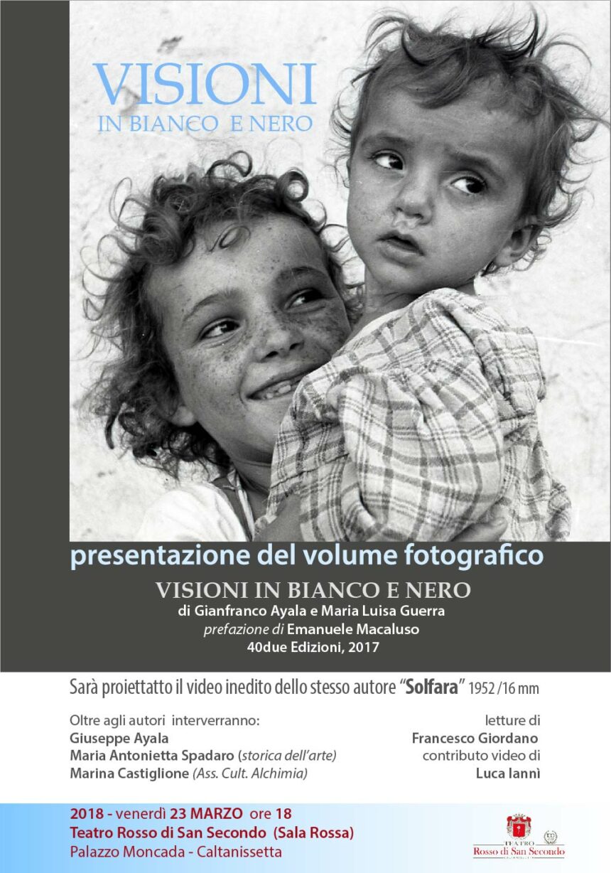 Verrà presentato giorno 23 marzo alle 17.30 presso la Sala Rossa del Teatro Rosso di San Secondo il libro fotografico “Visioni in bianco e nero”, di Gianfranco Ayala e Maria Luisa Guerra.