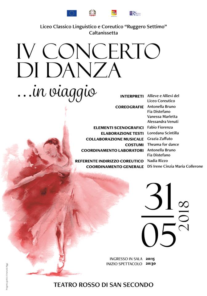 Il Liceo Classico, Linguistico e Coreutico "R. Settimo" presenta il IV concerto di danza organizzato dall'istituto giovedì 31 maggio 2018 alle ore 20:30 presso il Teatro Rosso di San Secondo. Titolo dell'evento è "…IN VIAGGIO" adattamento teatrale di alcuni canti dell’Inferno (Canto XXXIV) e del Purgatorio (Canti I, II, VIII, IX, XIII, XX, XXVI).