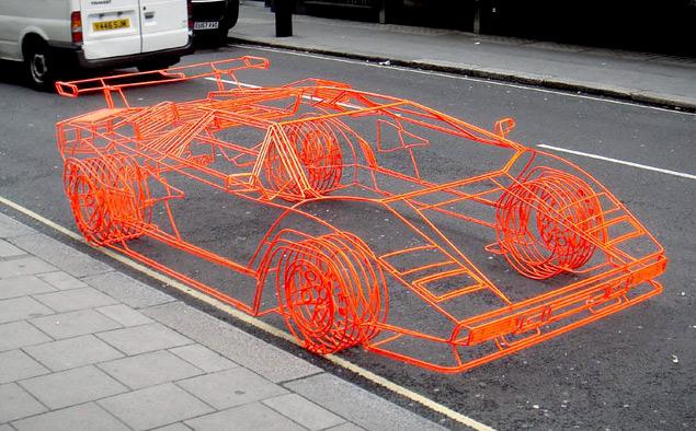 Andrà all’asta a Parigi, in occasione di Retromobile 2014, la più incredibile e unica delle Lamborghini mai prodotte. E’ la Countach ‘Koenig' realizzata nel 2007 da Benedict Radcliffe, un artista inglese specializzato nel ‘materializzare’ quella che sembra (ma non lo è) realtà virtuale. La Countach ‘Koenig' è infatti un oggetto assolutamente reale, in scala 1:1, ma costruito con un reticolo di 49 metri di tondino di ferro da 10 mm di diametro e verniciato in arancio fluo con un effetto che rende praticamente impossibile distinguerla da un disegno tridimensionale che si può ottenere con un computer e un programma di progettazione CAD.