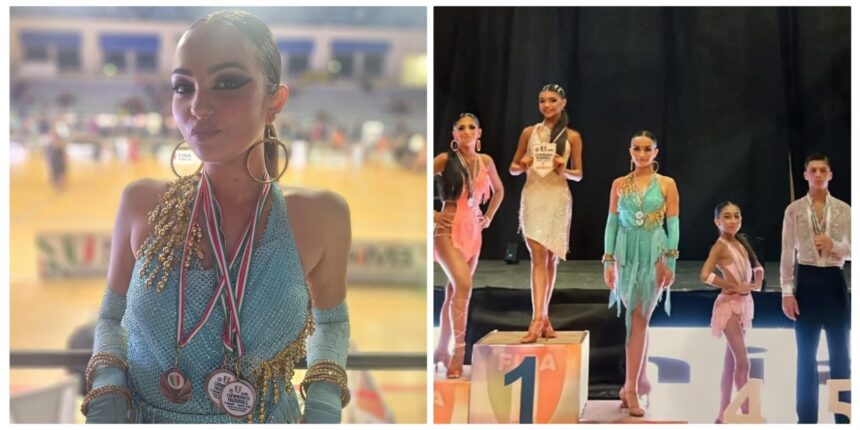 Il giovane talento già campionessa internazionale della disciplina – titolo conseguito a gennaio 2025 in Inghilterra – ha partecipato alle classi under 16 A e under 19 A conquistando sette finali a 6 su un totale iniziale di circa 300 ballerini. Annagiulia, allieva della scuola di ballo Dance Lab studio di via Pietro Leone, accompagnata dai suoi genitori che la seguono e la supportano in maniera costante, ha riempito il suo medagliere con 4 terzi posti assoluti e 3 quinti posti.