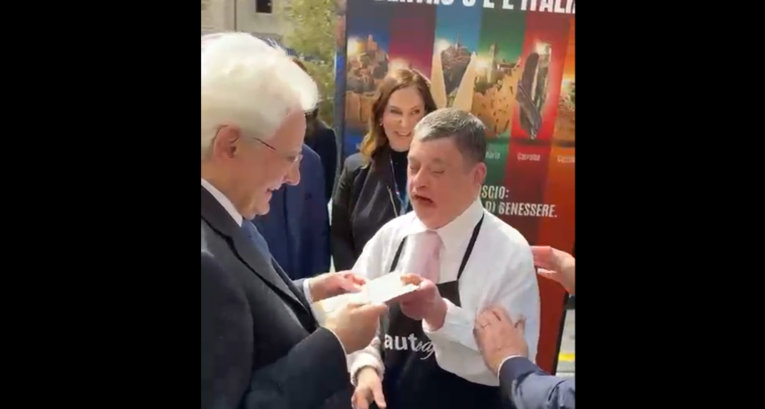 “Sei molto bello…dai arricampati”. La dolcezza e la spontaneità di Andrea Alessi, ragazzo con disabilità della cooperativa Etnos di Caltanissetta, hanno intenerito il Presidente della Repubblica Sergio Mattarella che si è intrattenuto per qualche secondo a chiacchierare con lui. Nel dialetto siciliano “arricampati” significa vieni, torna a casa. L'incontro è avvenuto in piazza della Repubblica a Roma in occasione dell'evento “Agricoltura E'” promosso dal ministero dell'Agricoltura. Andrea Alessi è uno dei ragazzi inseriti nel bar gelateria inclusivo di Caltanissetta “Aut Cafè” e si trova a Roma con il presidente della cooperativa Etnos Fabio Ruvolo e il maestro pasticcere Salvatore Campisi per far conoscere il nuovo progetto “Semi di Vita” e offrire i pasticcini realizzati grazie alla farina di semi. Ecco perché alla vista del Presidente della Repubblica Andrea lo ha fermato consegnandoli il volantino del progetto. Ecco i due video, visti dalla prospettiva del presidente e di Andrea, che sui social sono diventati virali
