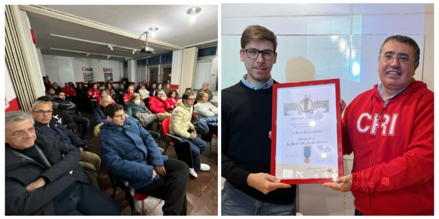 Al termine dell’assemblea il Presidente Piave assieme al consigliere Marco Lacagnina hanno consegnato simbolicamente a tutti i soci, in segno di ringraziamento, la medaglia d’oro al merito della sanità pubblica, conferita dal Presidente della Repubblica Sergio Mattarella e dall’On. Ministro della Salute Orazio Schillaci alla Croce Rossa Italiana con la l seguente motivazione: “Impegnata sin dai primi giorni dell’emergenza con le istituzioni per la prevenzione del virus, il soccorso sanitario e l’assistenza sociale e psicosociale, ha attivato servizi di pronto spesa, pronto farmaco, aiuto alimentare e consegna dei dispositivi di protezione individuale nonché contribuito al supporto psicologico telefonico e alla campagna vaccinale senza trascurare le attività di soccorso e di assistenza sanitaria a favore di persone vulnerabili, tra cui migranti e persone senza dimora”.