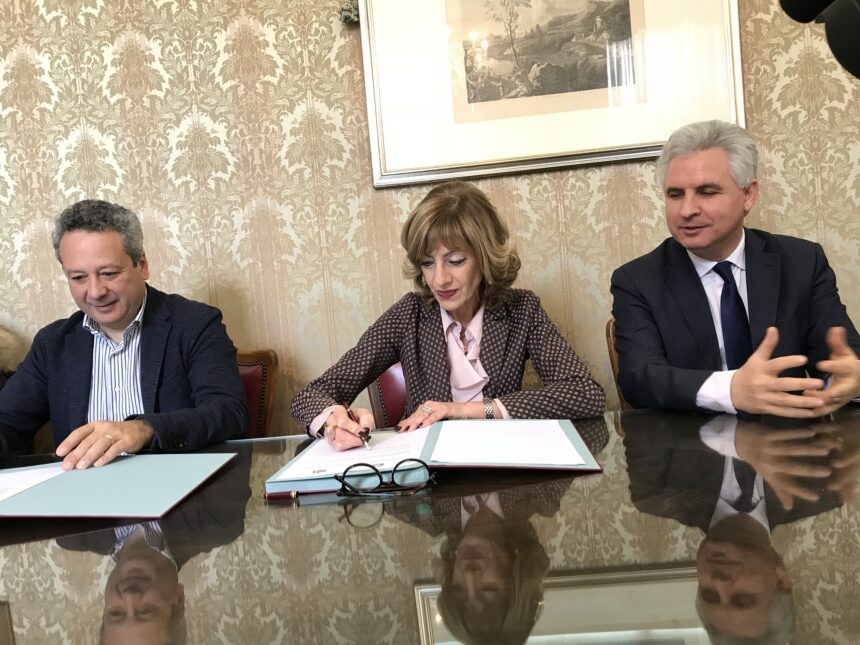 A siglarlo i sindaci dei comuni di Caltanissetta, Giovanni Ruvolo e di San Cataldo, Giampiero Modaffari, con il Prefetto Maria Teresa Cucinotta.