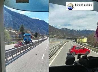(Adnkronos) – Blocca un'auto lungo la statale 47 della Valsugana, mettendosi con il camion "di traverso per fermare il traffico" e farle fare manovra. Sara De Bastiani, originaria di Fonzaso nel bellunese, racconta con un post su Facebook la scelta di mettere di traverso il suo autoarticolato per fermare una 500 rossa che stava percorrendo la corsia in direzione contraria. "Fortuna che ogni tanto non ragiono, ma agisco d'istinto…. Poi ci fanno fare, scrive nel post, "ore e ore di corsi per la carta di qualificazione del conducente a noi autisti, ma probabilmente quelli che più ne hanno bisogno sono gli automobilisti" conclude, aggiungendo che "anche oggi è andata bene" insieme a un cuoricino e a un'altra emoticon, simbolo di forza. —cronacawebinfo@adnkronos.com (Web Info)