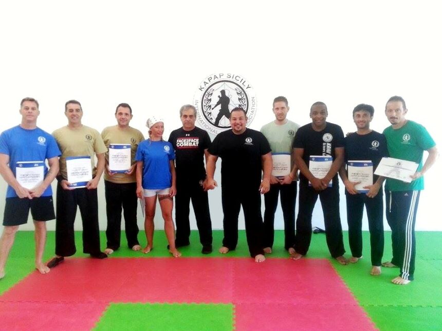 Torregrossa e GaliskoSi è svolto per la seconda stagione il corso Istruttore in Kapap diretto esclusivamente dal Maestro Israeliano Moshe Galisko Capo Internazionale della International Kapap Association coadiuvato dal Maestro Torregrossa Alfonso quale referente e Capo Istruttore per la Sicilia a Caltanissetta presso il Centro Tecnico Scuola Samurai Dojo (unico centro Krav Maga Kapap siciliano autorizzato da Israele ) Il Kapap (conosciuto anche come CQB-Close Quarter Battle) è un acronimo in ebraico moderno che sta per Krav Panim el Panim ???”?, ??”? (“Panim” significa viso, faccia; inteso per combattimento “faccia a faccia”). Sistema di autodifesa utilizzato dalle IDF (Forze di Difesa Israeliane) unità delle Forze Speciali che hanno adottato il sistema da anni .