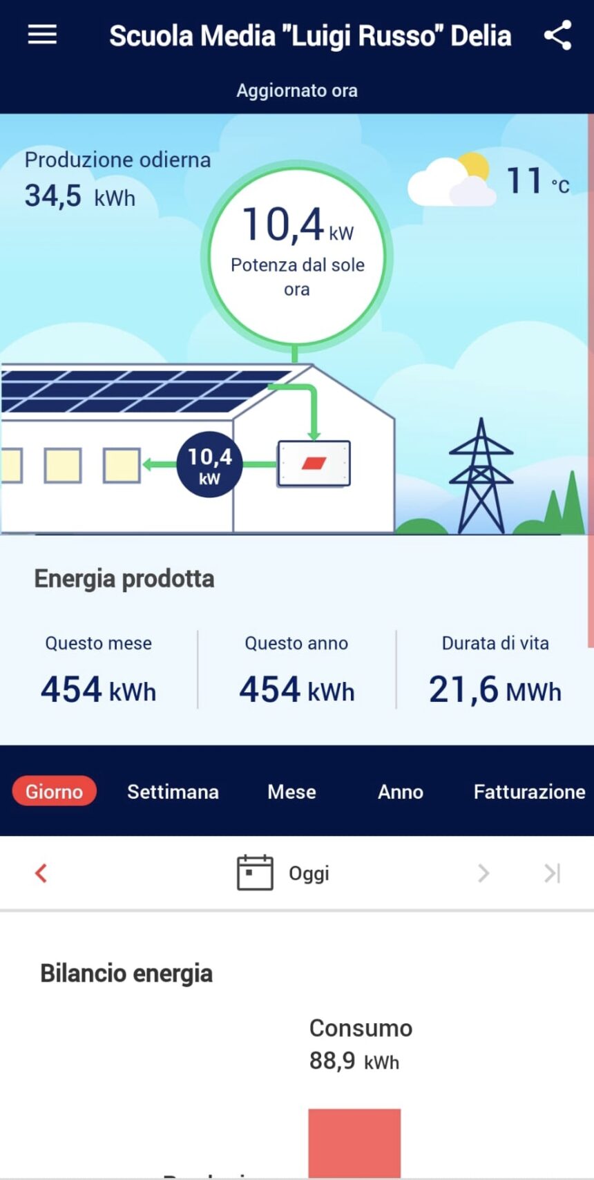 SCUOLA MEDIA “LUIGI RUSSO”: Monitoraggio e gestione da remoto del funzionamento e dei consumi che saranno praticamente azzerati!!! A seguito dei lavori di riqualificazione, ristrutturazione ed efficientamento si è provveduto ad installare un complesso ed innovativo impianto di climatizzazione (caldo/freddo/deumidificatore). Questo è alimentato totalmente da 40 KW di fotovoltaico che consentirà di azzerare i consumi dell’intero edificio scolastico (di fatto sarà il bilancio energetico dare/avere ad essere azzerato perché la produzione varia nel corso della giornata e dell'anno e la scuola in estate venderà molta energia in eccesso, il cui ricavato riuscirà a coprire le tutte le spese generali annuali). Un capolavoro che diventa realtà grazie all’impegno e alla professionalità!!!