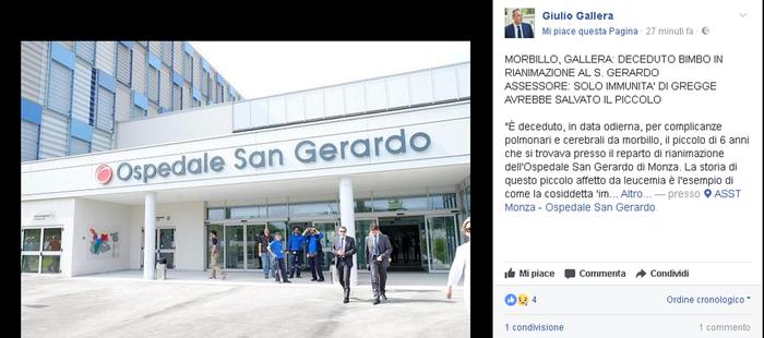 Secondo Gallera, "solo l'immunità di gregge avrebbe salvato il piccolo".