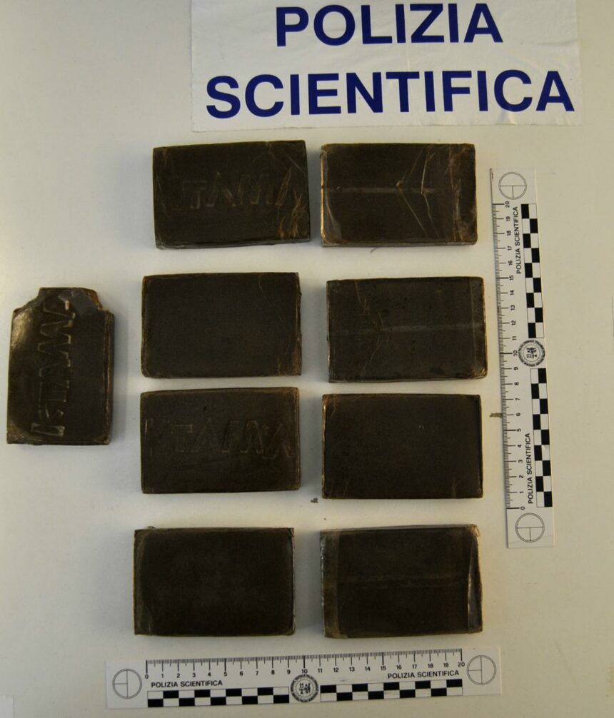 Quattro persone arrestate e quasi un chilo di hashish sequestrato. Altro colpo allo spaccio da parte della Squadra Mobile di Caltanissetta, che ieri pomeriggio ha arrestato a Gela i palermitani Giovanni Traina di 48 anni, Calogero Nicosia di 20 anni, Girolamo Fortunato di 20 anni e il gelese Maurizio Di Bartolo di 56 anni. Il blitz è scattato ieri pomeriggio da parte dei poliziotti della sezione criminalità organizzata che in via Cristoforo Colombo, che hanno notato una Mercedes Classe A con tre persone a bordo da cui scendevano Nicosia e Traina che teneva in mano una busta di carta. I due palermitano sono entrati nell'abitazione di via Tonini dove abita Di Bartolo, che ha precedenti penali per spaccio di sostanze stupefacenti. A quel punto gli investigatori hanno fatto irruzione nell'appartamento, scovando Nicosia, Traina e Di Bartolo durante la compravendita di droga. Di Bartolo, infatti, teneva tra le mani una busta di plastica bianca contenente all'interno 5 panetti di hashish, quattro dei quali sigillati singolarmente, che pesavano in tutto 882,55 grammi. Su una sedia, i poliziotti hanno rinvenuto una busta di carta vuota, la stessa che teneva in mano Traina al quale nella tasca dei pantaloni sono stati trovati 500 euro in contanti di vario taglio. La perquisizione è stata estesa anche sull'auto dove a a far da “palo”, secondo la Squadra Mobile, era rimasto Girolamo Fortunato, anche lui arrestato insieme agli altre tre su disposizione della Procura di Gela. I tre palermitani e il gelese sono stati rinchiusi nel carcere Balate di Gela.