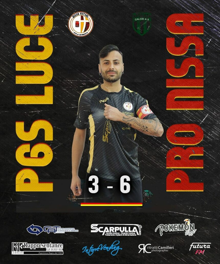 La Pro Nissa dopo tre battute d'arresto consecutive torna al successo superando la Pgs Luce con il risultato finale di 6 a 3. Per i ragazzi di mister Rizza, la sfida di Messina contro una diretta concorrente, rappresentava un vero e proprio crocevia per la stagione. Una partita approcciata nel modo giusto contro un avversario mai domo che sino a gran parte della ripresa é stato in gara. Bene i nuovi Lo Bongiorno, autore di una doppietta e Costa che si sono, dopo poco il loro arrivo, già ambientati facendo vedere ottime cose. Ci vuole ancora un pó di tempo per assimilare movimenti e schemi di gioco ma siamo sulla buona strada. Società soddisfatta della reazione dei ragazzi dopo la sconfitta di sabato, i segnali incoraggianti fanno ben sperare per il proseguo del campionato. Adesso arriva la sosta forzata per il turno di riposo previsto in calendario; arriva nel momento migliore per recuperare alcuni elementi non al meglio della condizione fisica e per oleare ulteriormente i meccanismi di gioco.