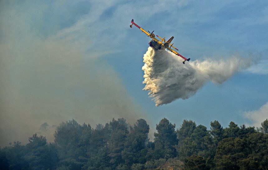 Il canadair sorvola la vallata Angeli