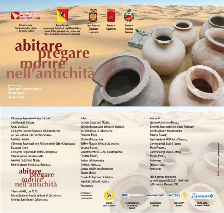 Nell’ambito delle iniziative di promozione e valorizzazione del Polo Museale di Gela e Caltanissetta relativamente alle collezioni archeologiche custodite nel Museo Regionale Interdisciplinare di Caltanissetta, la mostra “ Abitare, pregare e morire nell’antichità”, costituisce senz’altro un appuntamento da non perdere.