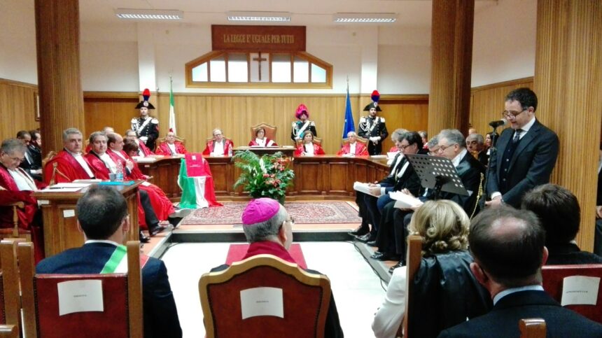 “Ritengo doveroso – ha dichiarato Maria Giovanna Romeo – esprimere stima e gratitudine: a tutti i Magistrati del Distretto i quali, benché in condizioni di stressante e quotidiano impegno lavorativo, per l’ormai endemica scarsità delle risorse, apprestano la loro quotidiana fatica nell’esercizio della giurisdizione al fine di dare risposte rapide e giuste alla diffusa ansia di legalità che proviene dalla società civile, dimostrando senso del dovere, spirito di sacrificio, equilibrio, riservatezza; a tutto il personale amministrativo e degli uffici NEP per i gravosi compiti che assolve in silenzio, nonostante la progressiva e insopportabile riduzione di organico cui assistiamo da anni, e il cui senso del dovere ha consentito a questa Corte d’Appello di raggiungere, nei suoi vari uffici, apprezzabili risultati nonostante le difficoltà dovute alle scoperture; agli Avvocati, anche quest’anno attivi nella difesa di questo presidio di legalità minacciato sempre da voci di soppressione, e che ringrazio per la proficua collaborazione; alle Forze dell’Ordine, la cui opera fattiva è fondamentale per l’esercizio e la sicurezza della giurisdizione”.