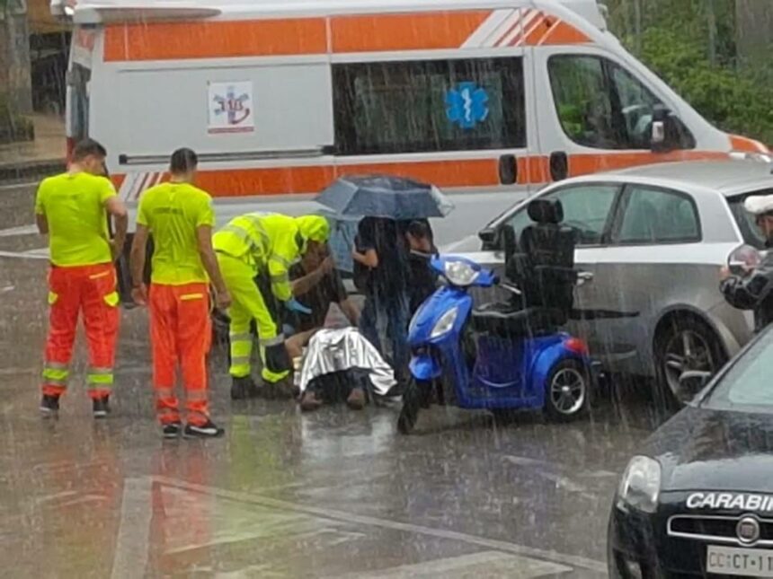 Scontro tra auto e moto oggi pomeriggio alle 14.30 all'incrocio tra via Kennedy e viale Regina Elena. Un uomo di 64 anni era a bordo di un velocipede (scooter a tre ruote) quando è stato travolto da una Fiat Stilo in transito. Il 64enne, sbalzato sull'asfalto, è stato subito soccorso dai presenti e coperto vista la pioggia battente. Sul posto sono intervenuti i carabinieri e gli agenti della Polizia Municipale. Poco dopo è arrivata un'ambulanza del 118 che ha trasportato il 64enne, che accusava forti dolori alla testa e alla schiena, al pronto soccorso dell'ospedale Sant'Elia in codice rosso. Attualmente l'uomo è sottoposto ad esami diagnostici. La Polizia Municipale sta ricostruendo la dinamica dell'incidente. (Foto Radio Cl1)