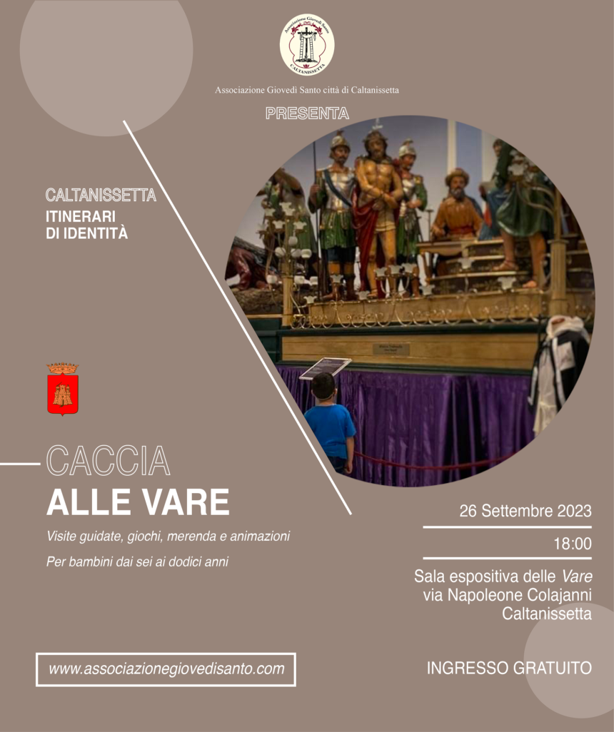 Gli esploratori avranno la possibilità di partecipare a visite guidate nella Sala Espositiva delle Vare, per scoprire la storia e l'arte che si celano dietro questi oggetti misteriosi, simboli della cultura locale. Per ricaricare le energie, sarà offerta una gustosa merenda! “Caccia alle vare” è parte integrante del cartellone “Caltanissetta: itinerari d'identità”, una iniziativa ideata dall'Associazione Giovedì Santo in collaborazione con il Comune di Caltanissetta, finalizzata a promuovere la cultura e l'identità della città attraverso eventi culturali. L'ingresso all'evento è gratuito.