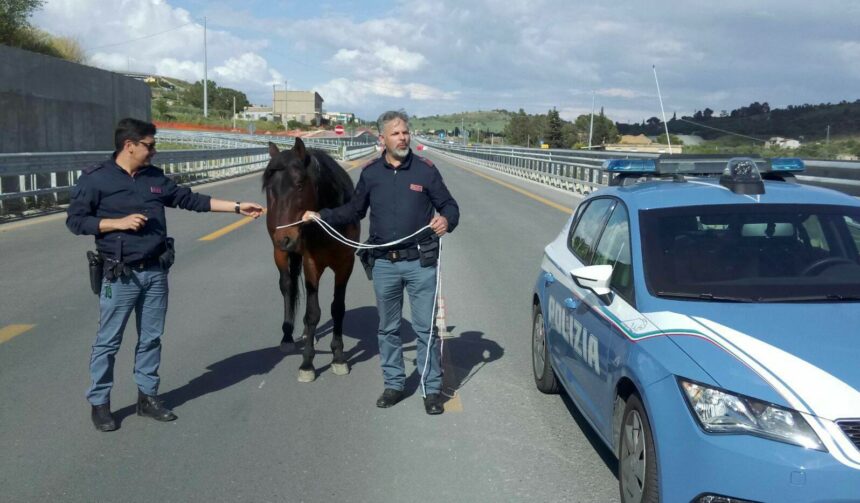 Un cavallo, probabilmente sfuggito al controllo del proprietario, ha creato pericolo al traffico veicolare domenica pomeriggio lungo la SP 640 Caltanissetta – Agrigento. L’intervento di una volante della Polizia di Stato ha evitato il perdurare della situazione di pericolo, bloccando l’animale nei pressi della sede del frigo macello. Intorno alle 15.30, presso la sala operativa della Questura, è stata segnalata, da parte di automobilisti in transito, la presenza di un equino che stava creando pericolo per la circolazione stradale. Una volante, recatasi immediatamente sul posto, ha individuato l’animale che galoppava lungo la strada; il cavallo, impaurito e infastidito dal rumore del traffico, con le cautele del caso, è stato avvicinato dei poliziotti che lo hanno imbrigliato con una corda fornita da un automobilista e, dopo averlo calmato e aver conquistato la sua fiducia, lo hanno condotto in un tratto stradale chiuso al traffico. Sul posto è intervenuto un medico dell’ASP che, con un apposito rilevatore, ha accertato che l’animale era privo di microchip e in buono stato di salute. L’animale in attesa di ulteriori accertamenti è stato temporaneamente affidato a un’azienda agricola.