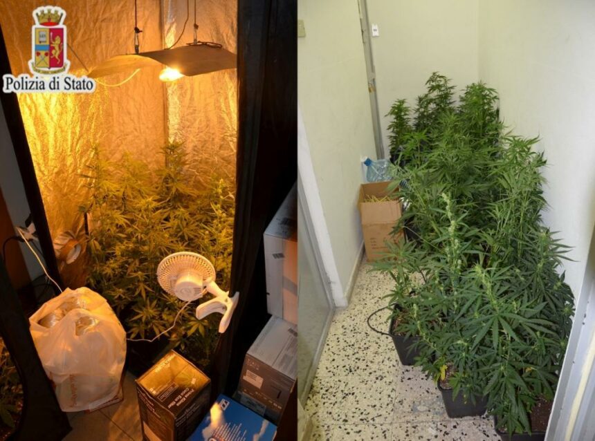 Per una decina di giorni la polizia ha tenuto sott’occhio lo stabile dove, v’era sentore, si nascondesse una piantagione di “erba” in casa. E quando i sospetti hanno trovato riscontri è scattata l’operazione da parte dei poliziotti della Questura. Gli agenti hanno scoperto ben 34 piante di marijuana invasate e suddivise in tre serre con sistemi di ventilazione, lampade per la temperatura e tutto il nécessaire, compreso costosissimi flaconi di fertilizzante necessari per la migliore crescita delle piante.