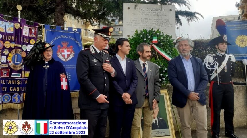Presenti anche rappresentanti dell Guardie d'Onore e del Nastro Azzurro nonchè il Primo Vicepresidente del Lions Caltanissetta dei Castelli. Dopo gli onori all'Eroe e la deposizione della corona d'alloro sono state lette delle brevi note biografiche di Salvo D'Acquisto dal giovanissimo Gabriele La Corte e quindi il responsabile di Airh ed Arcs Antonio Alberto Stella ha invitato il Sindaco ed il Colonnello a dire due parole. Il primo cittadino ha ringraziato l'Arma per il costante lavoro quotidiano che viene svolto nel territorio, ricordando che in quei tempi gli aguzzini erano i nazisti mentre oggi è la mafia; ed i Carabinieri che contrastano questo sistema consentono di rendere la società più sicura.