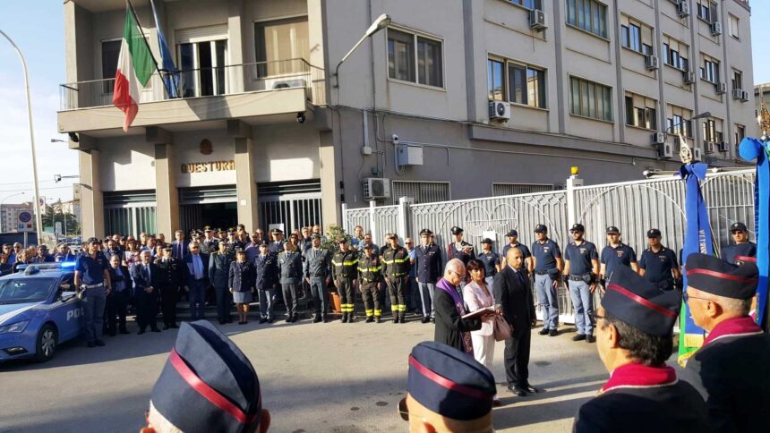 In concomitanza dei funerali solenni degli agenti Matteo Demenego e Pierluigi Rotta, assassinati il 4 ottobre scorso, celebrati stamattina nella chiesa di Sant’Antonio Taumaturgo a Trieste, si è svolta una breve cerimonia commemorativa nel piazzale antistante la Questura di Caltanissetta. Alla cerimonia hanno partecipato il Sig. Prefetto di Caltanissetta Cosima Di Stani, il Sindaco Roberto Gambino, il Comandante Provinciale dei Carabinieri Colonnello Baldassarre Daidone, il Comandate Provinciale della Guardia di Finanza Colonnello Andrea Antonioli, del Direttore della Casa Circondariale di Caltanissetta d.ssa Francesca Fioria, il Dirigente dell’Ispettorato Ripartimentale delle Foreste Ing. Salvatore Bonsangue, il Comandante Provinciale dei Vigili del Fuoco Ing. Gianfranco Scarciotta e rappresentanti della Polizia Municipale.