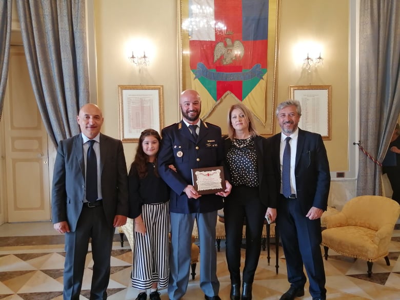 Il sindaco di Caltanissetta, Roberto Gambino, ha consegnato stamane una targa di riconoscimento per meriti civili al poliziotto nisseno Prospero Romano, assistente capo coordinatore dell'Ufficio prevenzione generale e soccorso pubblico – sezione Volanti – della Questura di Caltanissetta che la scorsa estate si è reso protagonista del salvataggio di una ragazza che stava per annegare nei pressi del litorale di Maddalusa in provincia di Agrigento.