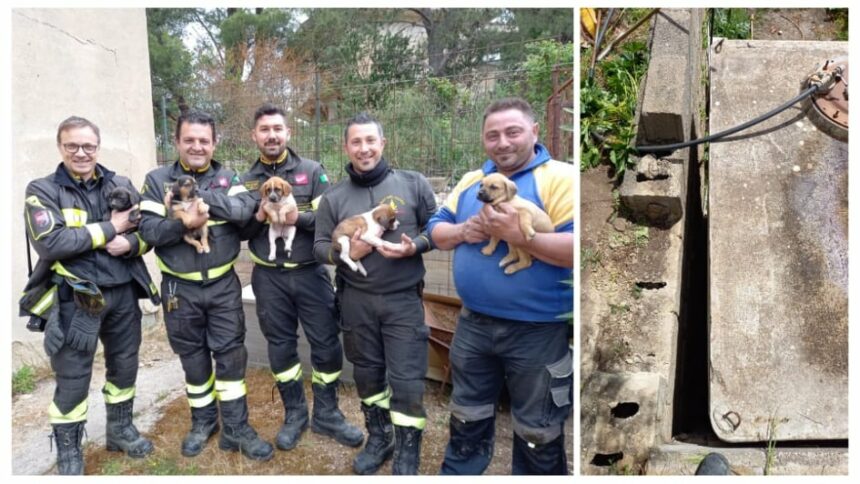 Quattro cuccioli sono stati salvati dai vigili del fuoco di Caltanissetta dopo essere finiti all'interno di una intercapedine, tra un muro e una vasca di cemento, scivolando per oltre 2 metri. E' accaduto in contrada Santo Spirito dove i quattro cagnolini giocando, sono scivolati in un'intercapedine a imbuto e alla fine non riuscivano più nemmeno a muoversi. Un quinto cucciolo, più prudente, è rimasto a osservare la scena. A dare l'allarme il proprietario dei cani che senza l'intervento dei vigili del fuoco non sarebbe riuscito ad estrarli. Mediante delle tecniche specialistiche appropriate la squadra guidata dal capo reparto esperto Vittorio Imbrogno è riuscita a metterli in salvo e adesso i quattro cagnolini stanno bene.