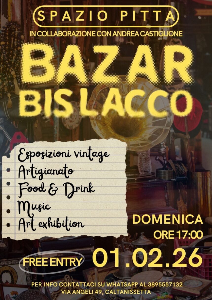 Domenica 1 febbraio, a partire dalle ore 17:00, lo Spazio Pitta ospita per la prima volta in città Bazar Bislacco, un evento sperimentale e fuori dagli schemi pronto a trasformare le sale interne del locale in un luogo di scoperta, incontro e creatività. Per l’occasione, lo Spazio Pitta cambierà volto accogliendo un market creativo che riunirà espositori di diverso genere: artigianato, vintage, illustrazione, produzioni indipendenti e proposte originali, insieme a categorie inusuali e piccole sorprese che il pubblico potrà conoscere solo vivendo l’evento. A fare da cornice,