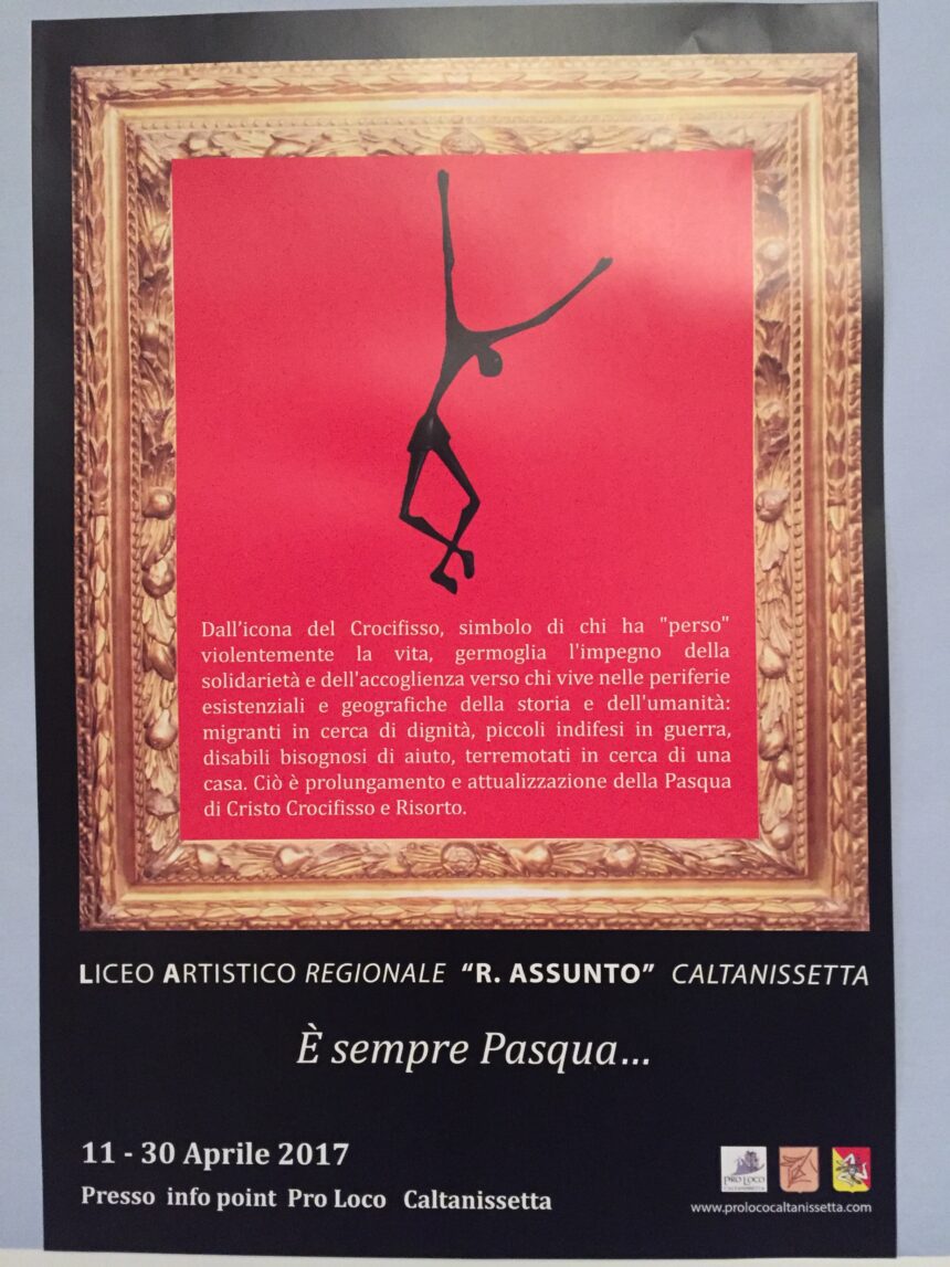 "È Pasqua per sempre…", questo il titolo della mostra allestita all'interno dell'Info Point Pro Loco, presieduta da Giuseppe D'Antona, di corso Umberto 138 ed ideata dal Liceo Arstistico Regionale "R. Assunto" di Caltanissetta. La mostra è visitabile dall'11 al 30 Aprile dalle 9 alle 13 e dalle 18 alle 22 solo per il periodo della Settimana Santa, dopodiché dalle 9 alle 13 e dalle 16 alle 20.
