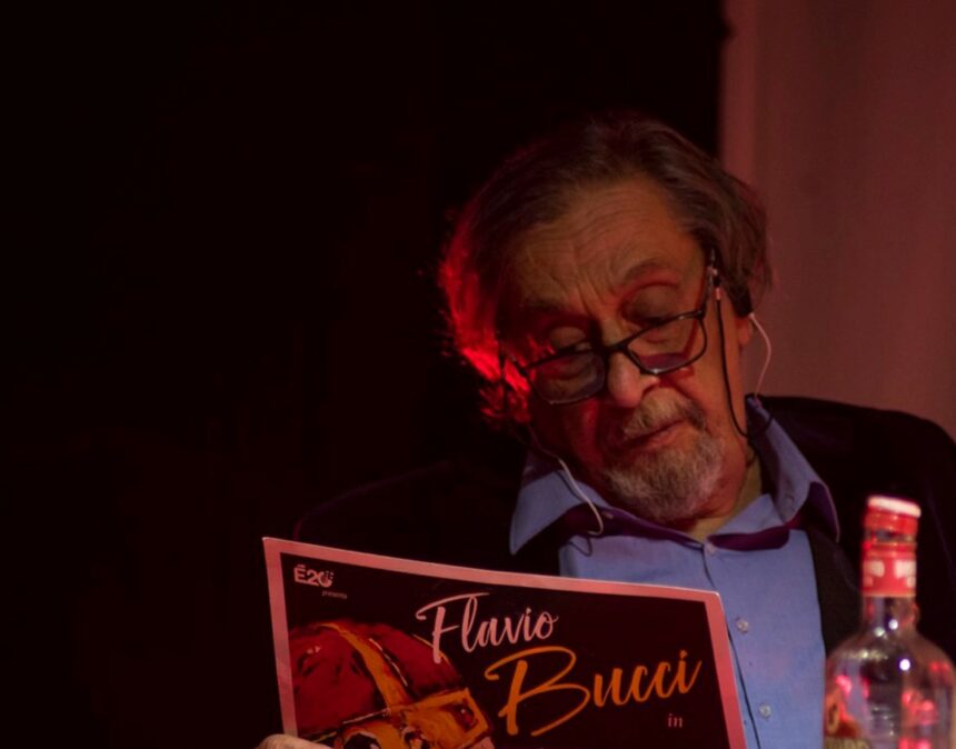 Flavio Bucci torinese classe 1947, si è formato alla Scuola del Teatro Stabile di Torino. Esordisce al cinema diretto da Elio Petri, ne La classe operaia va in paradis (1971), cui segue La proprietà non è più un furto (1973). Lavora con Giuliano Montaldo, nei film L’Agnese va a morire (1976) e Il giorno prima (1987). È celebre la sua interpretazione del Don Bastiano de Il marchese del Grillo di Mario Monicelli (1981). Senza dimenticare Tex e il signore degli abissi di Duccio Tessari (1985), Secondo Ponzio Pilato di Luigi Magni (1987), Teste rasate di Claudio Fragasso (1993). Negli ultimi anni recita nelle commedie Caterina va in città di Paolo Virzì (2003) e Lezioni di volo di Francesca Archibugi (2007). Strepitosa la sua caratterizzazione del politicante Franco Evangelisti, braccio destro del mefistofelico Andreotti de Il Divo di Paolo Sorrentino (2008). In televisione si fa conoscere dal grande pubblico interpretando lo sceneggiato televisivo Rai Ligabue di Salvatore Nocita (1977), con il quale torna a lavorare nei Promessi sposi (1989). Per il piccolo schermo, interpreta anche il commissario Ingravallo in Quer pasticciaccio brutto de via Merulana di Piero Schivazappa, all’omonimo romanzo di Carlo Emilio Gadda (1983). Appare anche nella Piovra di Damiano Damiani (1984) e ne L’avvocato Guerrieri – Ad occhi chiusi di Alberto Sironi (2008). In teatro recita come protagonista in numerose pièce. Marco Mattolini lo dirige in Opinioni di un clown di Heinrich Böll, Le memorie di un pazzo di Gogol’, Uno, nessuno e centomila e Il fu Mattia Pascal di Luigi Pirandello. Anche Mario Missiroli lo dirige in spettacoli pirandelliani: Quaderni di Serafino Gubbio operatore e I giganti della montagna. Dopo una lunga assenza dalle scene torna in teatro con lo spettacolo dedicato a Giacomo Leopardi, Che fai tu luna in ciel, dimmi che fai, ancora una volta diretto da Mattolini, con la danzatrice Gloria Pomardi e la musicista Alessandra Celletti.