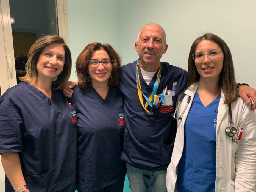 «Al pronto soccorso dell’ospedale Sant’Elia un uomo è stato salvato dopo trenta minuti di arresto cardiocircolatorio». Ha dell’incredibile il racconto degli operatori sanitari del nosocomio nisseno, con medici e infermieri protagonisti di un salvataggio ormai quasi impossibile, considerando che in questi casi dopo dieci minuti le lesioni sono irreversibili. Poco tempo prima un uomo di 42 anni si era presentato nel reparto di emergenza per un dolore, non troppo forte, nella zona della scapola e del braccio sinistro. Al quarantaduenne, che ha raccontato di aver avuto lo stesso problema due anni prima, quando gli era stato somministrato dell'antidolorifico e un gastroprotettore, era stato assegnato il codice verde. Una volta dentro il medico di turno, Salvatore Nocilla, ha fatto eseguire due elettrocardiogrammi e i consueti esami degli enzimi cardiaci che avrebbero dato esito totalmente negativo. Nessuno dunque avrebbe mai potuto immaginare cosa sarebbe successo da lì a breve. Nel frattempo in sala è entrata la moglie dell'uomo. Una volta dentro i due hanno cominciato a parlare serenamente fino a quando il 42enne è andato improvvisamente in arresto cardiaco. Subito le grida della donna che, presa dal panico, è stata fatta uscire fuori. Nel frattempo è stato trasferito in Cardiologia dove era presente la dottoressa Fiorella Privitera (nella foto con gli infermieri della equipe di Cardiologia) che ha coordinato ed eseguito insieme ai colleghi, e incitando più volte tutti a continuare, tutte le manovre per tentare di riportare il giovane in vita. “Dopo la prima fase in pronto soccorso – ha raccontato la dottoressa Privitera – abbiamo proseguito insieme all’equipe infermieristica le manovre rianimatorie e solo dopo 38 minuti abbiamo ottenuto il ripristino del ritmo spontaneo. A questo punto abbiamo fatto intubare il paziente, fatto diagnosi di infarto, per poi avviarlo in emodinamica. Casi simili capitano ma si tratta sicuramente di una rarità considerata la lunga permanenza in arresto cardiaco che non ha comportato danni al paziente. Questo lo dobbiamo alla corretta esecuzione delle manovre rianimatorie. Sentire quel cuore tornare a battere regolarmente e quel corpo tornare a riscaldarsi è stata un’emozione indescrivibile e rimarrà una delle emozioni più belle della mia vita”. Nel frattempo è intervenuto il Rianimatore Michele Minissale che ha provveduto all'intubazione del paziente al fine di garantire una buona ossigenazione cereberale. Nel corso del trasferimento in Emodinamica è sopraggiunto un secondo rianimatore, la dottoressa Rita D'Ippolito, per continuare con le procedure di rianimazione e consentire così l'esecuzione della procedura. Qui, infatti, è stato eseguito, un intervento di angioplastica da parte della dottoressa Manuela Creaco. "Nessuno ormai ci credeva più – ha commentato il medico Sebastiano Nocilla – ma ci siamo detti dobbiamo salvarlo. Vederlo ritornare in vita è stato qualcosa di incredibile. Una gioia immensa". Finita la procedura il 42enne è stato ricoverato per 24 ore in sala operatoria assistito dai Rianimatori Antonio Lombardo e Roberto Serretta. "Il paziente – spiega la dottoressa Rita D'Ippolito – avrebbe potuto riportare seri danni cerebrali da ipossia ma grazie al lavoro di gruppo dei colleghi intervenuti è stata scongiurata qualsiasi conseguenza permanente".