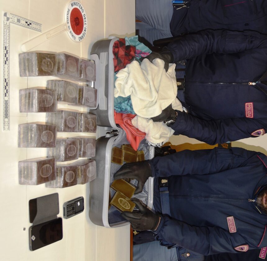 Domenica mattina i poliziotti della sezione volante hanno arrestato Ikpefua Becky, venticinquenne cittadina nigeriana, poiché colta nella flagranza di reato di detenzione ai fini di spaccio di sostanze stupefacenti. La donna è stata fermata e sottoposta a controllo da una pattuglia della Polizia di Stato, in servizio di controllo del territorio nel centro storico, mentre a piedi percorreva via Cavour in direzione Corso Vittorio Emanuele. La venticinquenne, che trascinava con sé un trolley, alla vista egli agenti ha tentato di accelerare il passo nel tentativo di eludere il controllo. Di seguito alla perquisizione del bagaglio i poliziotti hanno trovato, nascosti tra i vestiti, ottanta panetti di hashish di circa centro grammi ciascuno, per un peso complessivo di quasi otto chilogrammi. La vendita al dettaglio dello stupefacente sequestrato avrebbe fruttato sul mercato illegale fino a 80.000 euro di guadagno. L’arrestata è stata condotta in questura e, dopo gli adempimenti di rito, su disposizione del P.M. presso la Procura della Repubblica del Tribunale di Caltanissetta, condotta al carcere di Agrigento a disposizione dell’Autorità Giudiziaria.