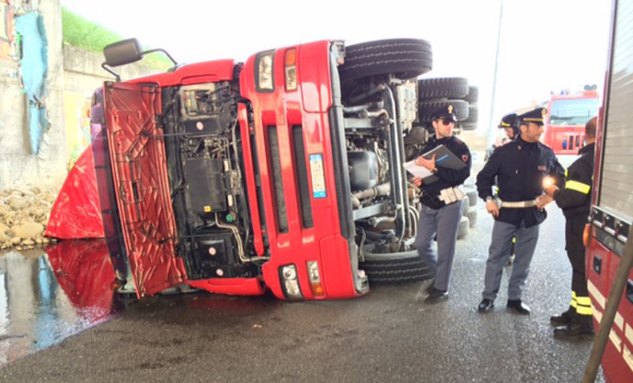 Incidente stradale alle porte di Caltanissetta. Un tir si è ribaltato nel primo pomeriggio di oggi mentre attraversava la rampa di collegamento 640 dir. L'incidente autonomo si è verificato sulla statale 626 e ha creato qualche rallentamento alla circolazione stradale. Illeso il camionista al volante del mezzo di trasporto, spavento a parte. Non è ancora chiaro il motivo che ha fatto perdere il controllo del Tir, che è stato rimosso dall'autogru della ditta di soccorso stradale “Giannavola”. Sul posto, per i rilievi, sono intervenuti i poliziotti della Stradale di Caltanissetta e della sezione Volanti. FOTO ARCHIVIO