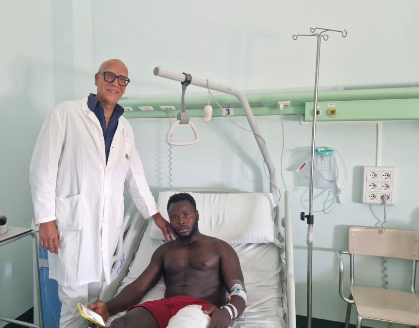 Ed è stato qui che una volta arrivato a Lampedusa è stato sottoposto a una radiografia da cui è emersa la brutta frattura riportata al femore. Poi grazie all’ufficio diocesano Migrantes di Caltanissetta che tra i suoi servizi annovera anche un centro di ascolto sanitario, curato dalla dottoressa Bice Domanti, oltre che servizi legali, di disbrigo pratiche, di inserimento lavorativo, e alfabetizzazione, Beja, che è ospite del Cara di Pian del Lago, è stato messo in contatto con il direttore dell’Unità Operativa Complessa di Ortopedia Massimo Siracusa che si è subito reso disponibile per operarlo.