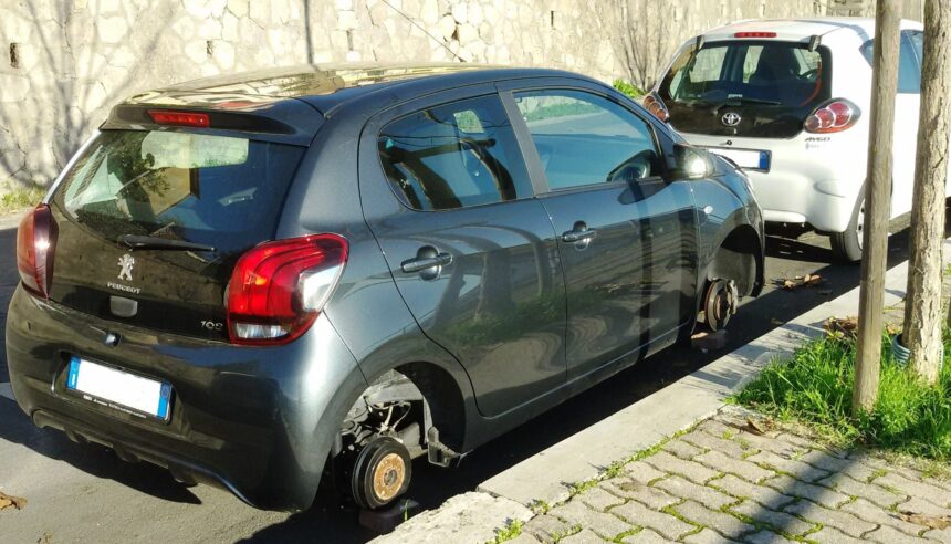 Parcheggia l’auto all’interno di uno slargo condominiale di via Salvo D’Acquisto e la ritrova priva delle ruote. E’ accaduto a un nisseno cinquantenne proprietario di una Peugeot, che nei giorni scorsi aveva lasciato la propria autovettura all’interno del piazzale condominiale dov’è residente, in via Salvo D’Acquisto, per ritrovarla l'indomani senza le ruote. Ignoti malviventi hanno evidentemente adocchiato l’auto e l’hanno depredata delle quattro ruote, cerchioni più pneumatici. All’uomo non è rimasto che denunciare il furto alle forze dell’ordine.