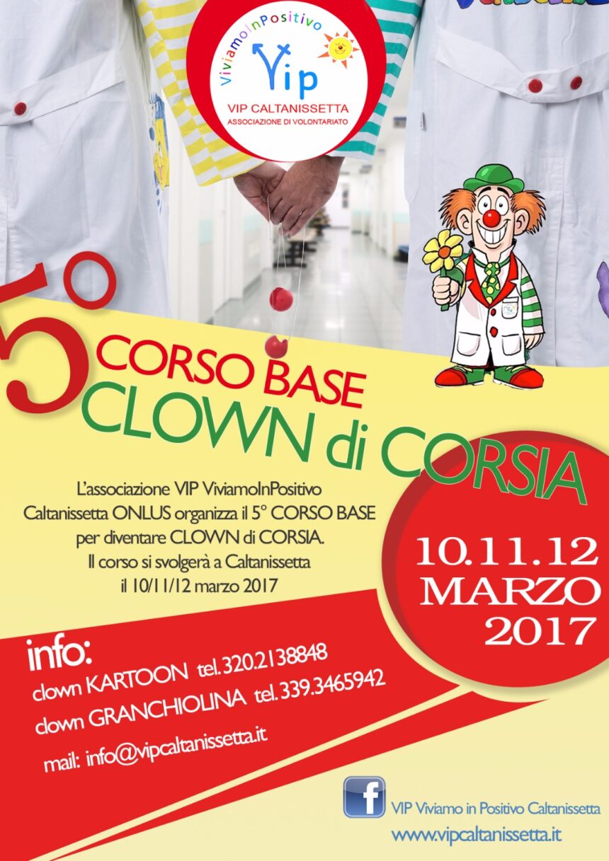 L'associazione VIP ViviamoInPositivo Caltanissetta ONLUS ha il piacere di presentare il 5° CORSO BASE per diventare CLOWN di CORSIA che si terrà a Caltanissetta il 10-11-12 Marzo 2017. L'associazione, federata a VIP Italia ONLUS, è una delle 57 associazioni sparse in tutta Italia che opera presso le strutture ospedaliere (e non solo) per portare un sorriso a chi ne ha bisogno. In particolare l'associazione VIP ViviamoInPositivo Caltanissetta ONLUS svolge il proprio servizio ogni domenica presso l'ospedale Sant'Elia di Caltanissetta nei reparti di Pediatria ed Oncologia. Inoltre presta servizio presso la casa famiglia “Casa del Sorriso ONLUS”, sita a Caltanissetta, una domenica al mese. I volontari clown VIP sono missionari della gioia e svolgono la propria attività a favore di persone in difficoltà e di soggetti svantaggiati, offrendo sostegno, ascolto, solidarietà negli ospedali, nelle case di riposo, nelle carceri, nelle comunità, in missione e ovunque regni uno stato di disagio e di sofferenza. Il volontario clown VIP non è né supereroe né un professionista, ma una persona comune come tutti che sceglie di occupare il proprio tempo libero nel compiere la sua missione: portare un sorriso laddove ce ne sia bisogno. Il volontario prima di occuparsi del prossimo e mettere a disposizione il proprio tempo libero riceve una formazione di base che è uniforme in tutta Italia; una preparazione che viene arricchita periodicamente grazie ad allenamenti preparati dalle nostre trainer e grazie ai corsi specialistici offerti da VIP Italia. Per poter partecipare al corso bisogna contattare: 1. clown Kartoon cell. 3202138848; 2. clown Granchiolina cell. 3393465942; oppure inviare una mail a: info@vipcaltanissetta.it Ci potete seguire sulla pagina Facebook VIP Viviamo In Positivo Caltanissetta oppure sul nostro sito www.vipcaltanissetta.it