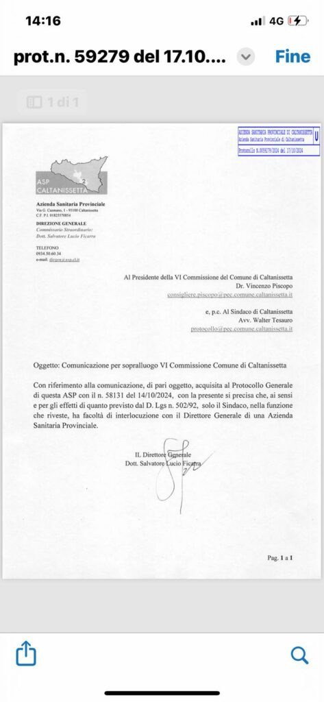 La volontà della Direzione Generale Asp, formalizzata con nota PEC inoltrata al presidente della commissione in parola, è laconicamente sintetizzata nell’affermazione “solo il Sindaco ha facoltà di interlocuzione con il Direttore generale di un'Azienda Sanitaria”, e rappresenta un inequivocabile segnale di chiusura nei confronti del consiglio comunale di Caltanissetta di cui la commissione è un’articolazione e i componenti sono rappresentanti della città.