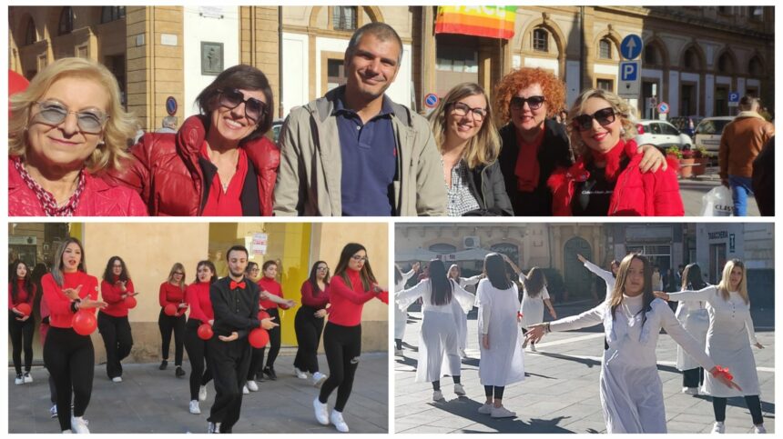 La prima fase si è svolta dalle ore 11.00 alle ore 11.15 in piazza Garibaldi dove un gruppo nutrito di alunne dell’indirizzo Odontotecnico e Servizi per la Sanità e per l'Assistenza Sociale si è esibito in un flash mob sulle note della canzone di Nada dal titolo “Ballata triste” che racconta di una giornata apparentemente normale in una famiglia apparentemente normale, che finisce in tragedia. L’organizzazione di questa esibizione è stata curata dai professori Roberto Martorana e Loredana Ferraro.