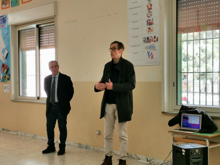 Giorno 13 Febbraio 2023 Massimo Caponnetto, figlio del Magistrato Antonino Caponnetto, è stato accolto all’Istituto Comprensivo Statale “Antonino Caponnetto” di Caltanissetta dal Dirigente Scolastico Professore Maurizio Lomonaco. Il Coro Stabile “MusicamicACaponnetto” formato dagli alunni della scuola primaria e diretto dall’insegnante Ivana Stringi all’arrivo di Massimo Caponnetto ha intonato l’Inno di Mameli, mentre i piccoli alunni della Scuola dell’Infanzia “Santa Petronilla” e gli alunni delle classi quinte della scuola primaria sventolavano le bandierine dell’Italia. Il coro ha eseguito altri due brani: Il famoso Inno alla Gioia di Ludwing Van Beethoven e un brano dal titolo “Dentro una cosa piccola c’è una cosa grande…” del musicista Andrea Oggioni.