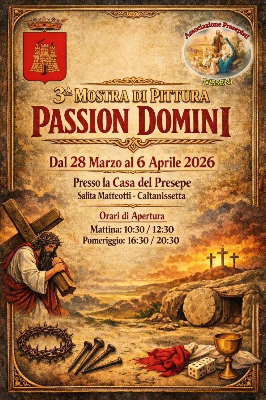 Dopo il grande successo della Tavolata di San Giuseppe le Associazioni A.V.O.S. Stella Azzurra e Presepisti Nisseni Sabato 28 Marzo alle ore 17:30 presso la Casa del Presepe daranno vita alla propria manifestazione Quaresimale con la cerimonia di apertura della mostra dei Diorami Pasquali e della Mostra di Pittura ” Passion Domini…. Previsto anche un concerto di Marce Funebri eseguito dalla Banda Musicale Vincenzo Ligambi di Pietraperzia…. Momenti di condivisione all'insegna delle Antiche Tradizioni Pasquali… Si invita tutta la cittadinanza a partecipare…..