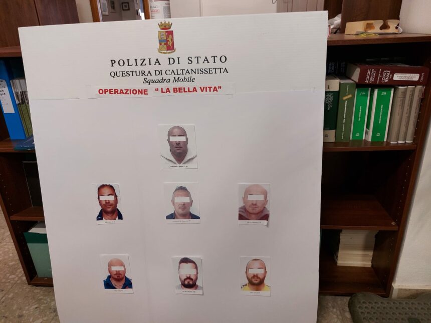 Sono questi gli arrestati dalla Squadra Mobile di Caltanissetta nell’ambito dell’operazione “La bella vita”: Carmelo Bontempo, 43 anni, Fabio Meli, 43 anni, Giovanni Puzzanghera, 44 anni, Francesco Zappia, 47 anni, Ivan Villa, 48 anni, Daighoro Iacona, 31 anni, Gino Gueli, 32 anni. Gli arrestati sono accusati a vario titolo per associazione di tipo mafioso dedita alla commissione di estorsioni e al traffico di sostanze stupefacenti. Le indagini hanno permesso di accertare che la cassa del clan mafioso era foraggiata dallo spaccio di droga e dalla tradizionale attività estorsiva cui sono stati sottoposti diversi commercianti del capoluogo e della provincia.