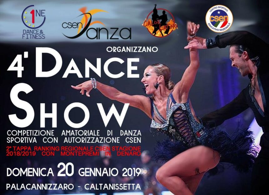 Si svolgerà domani, domenica 20 Gennaio al PalaCannizzaro di Caltanissetta la 4°edizione "Dance Show", competizione di danza sportiva CSEN a carattere interregionale. Alla manifestazione sarà presente anche qualche Associazione della regione Calabria.